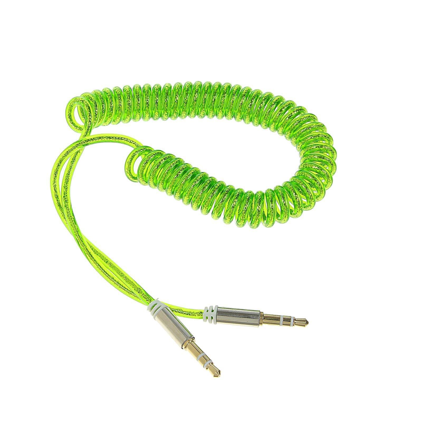 Кабель Jack 3.5(п) - Jack 3.5(п) No brand Пружина зеленый витой 1 м. угл. штекер с пружиной