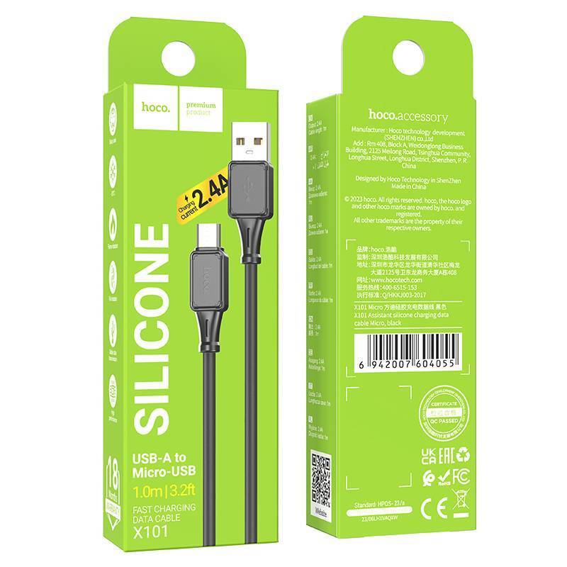 Кабель USB - micro USB HOCO X101 силикон серый круглый 2.4A 1 м.