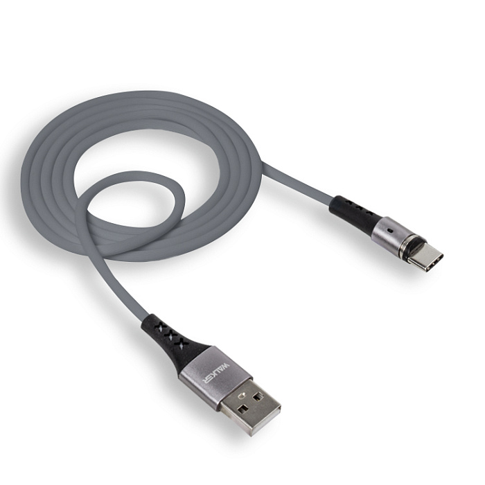 Кабель USB - micro USB Walker C775 прорезиненный серый круглый 3.1A 1 м. магнитный с Led