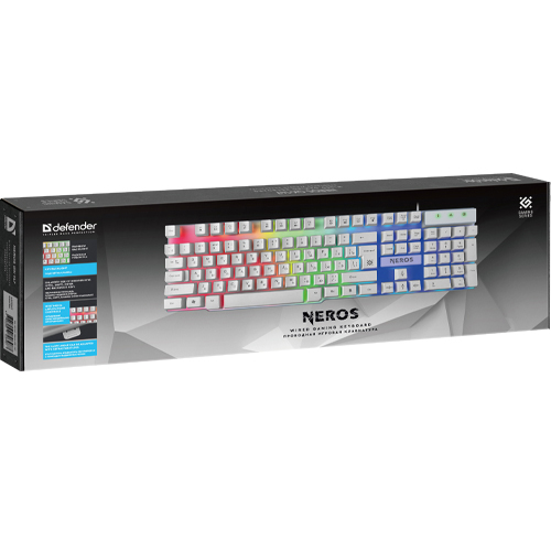 Клавиатура Defender Neros проводная игровая с подсветкой белый