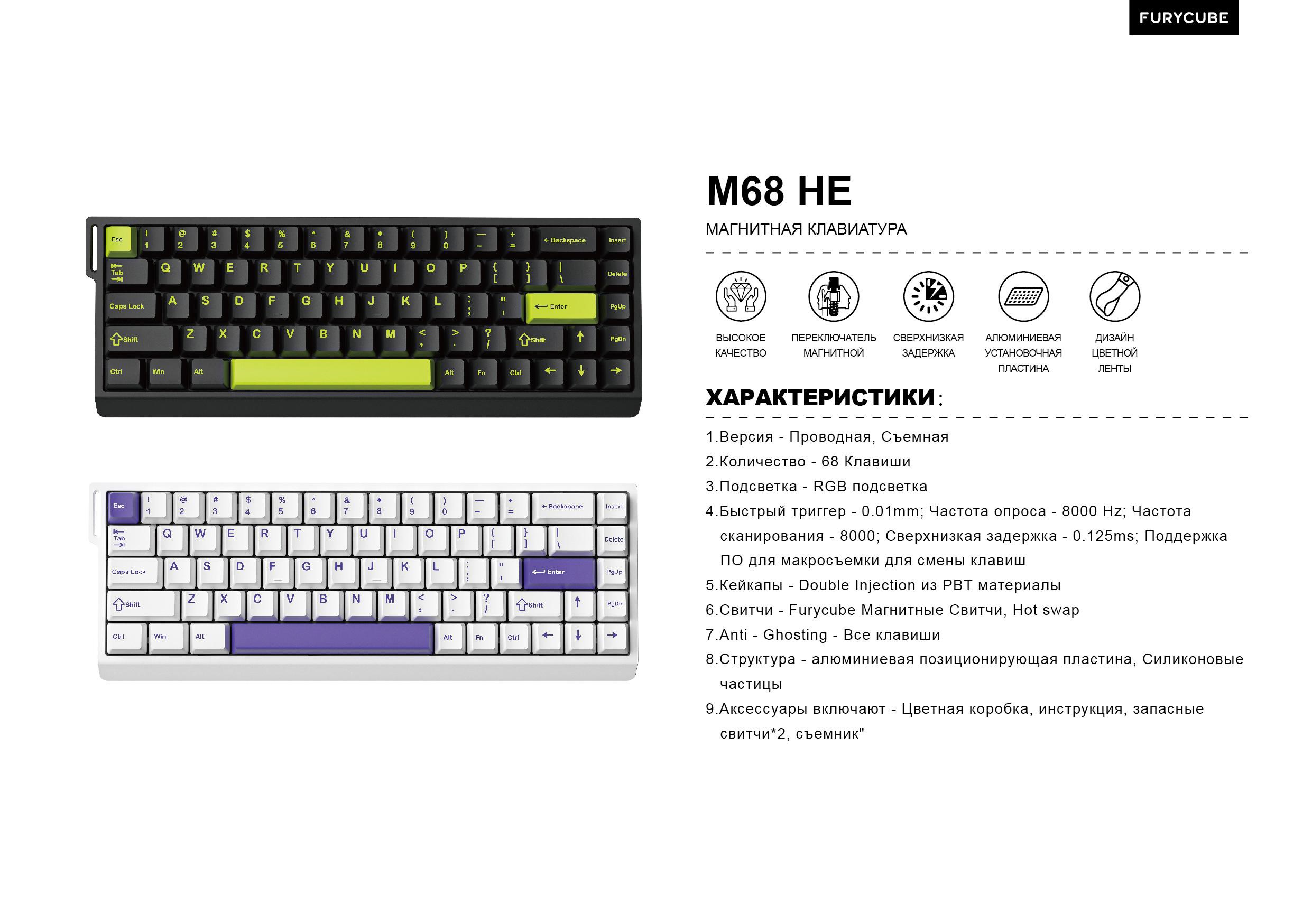Клавиатура FURYCUBE M68 HE проводная магнитная, LED подсветка черный