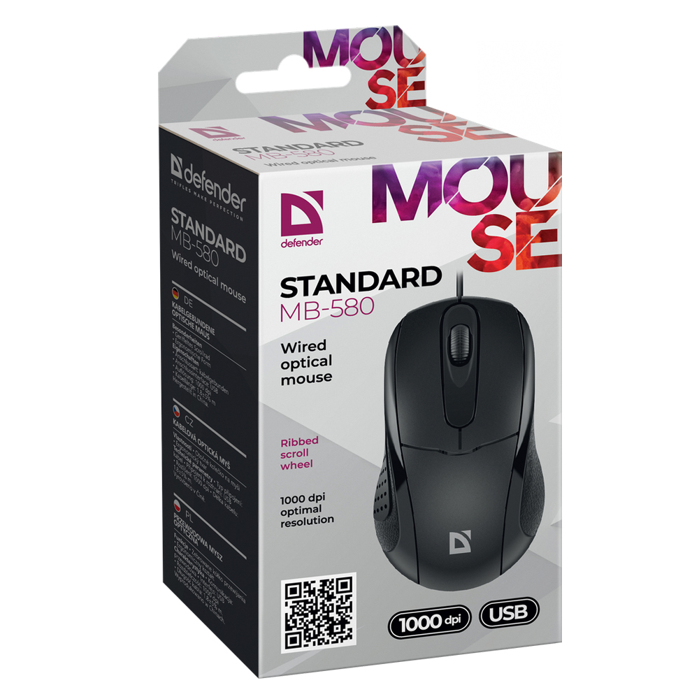 Мышь Defender Standard проводная оптическая 1000 dpi черный