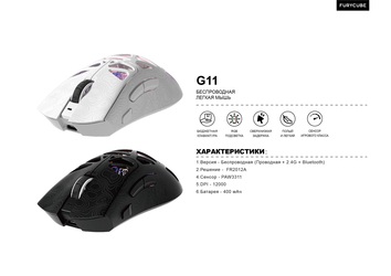 Мышь FURYCUBE G11 Bluetooth+2,4G PixArt 3311 АКБ 12000 dpi белый