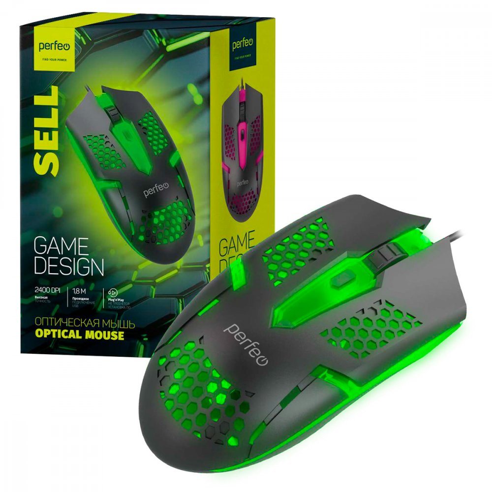 Мышь Perfeo SELL проводная оптическая LED подстветка черный