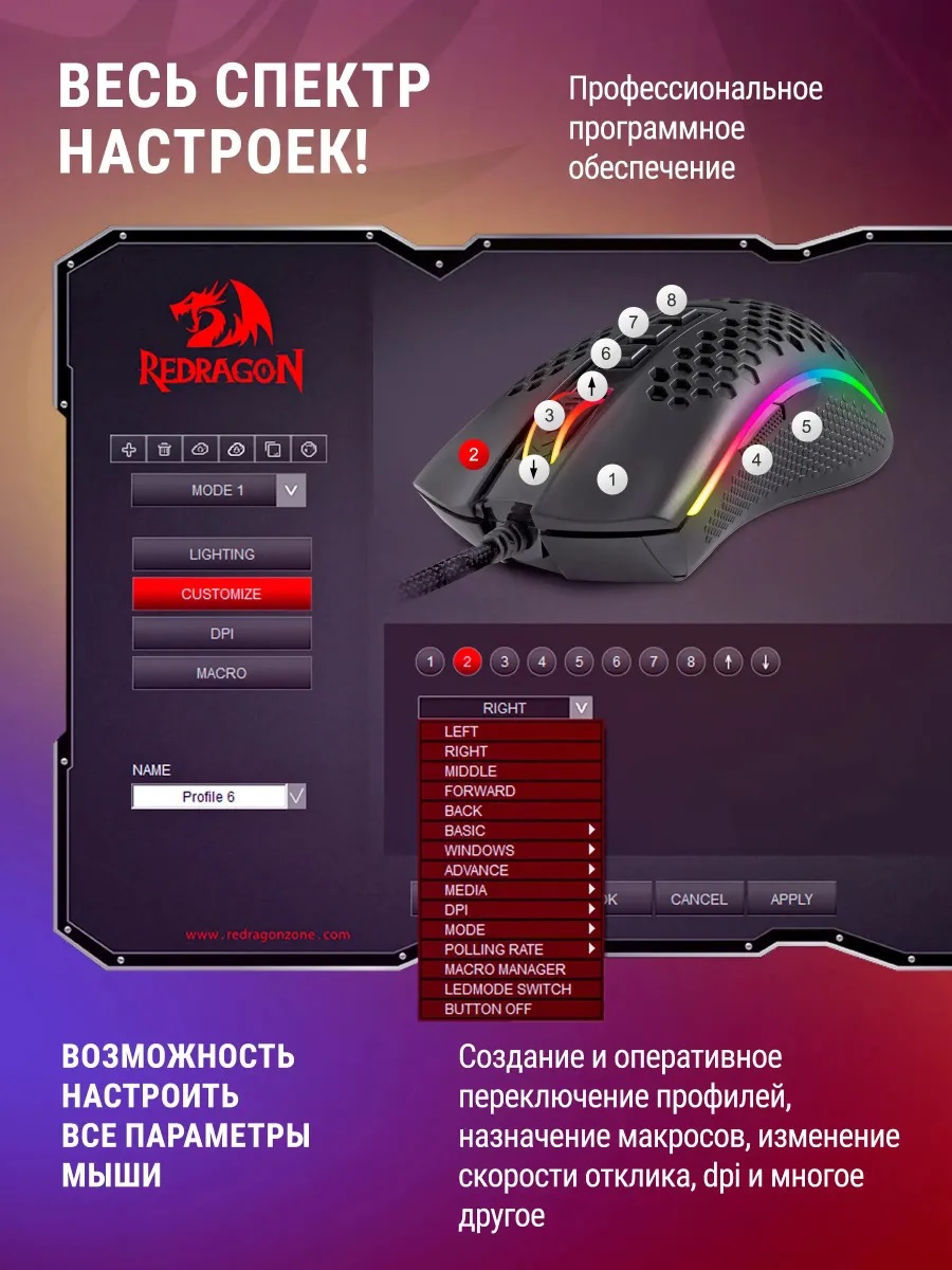 Мышь Redragon Storm проводная оптическая игровая с подсветкой 12400 dpi черный 8 кнопок