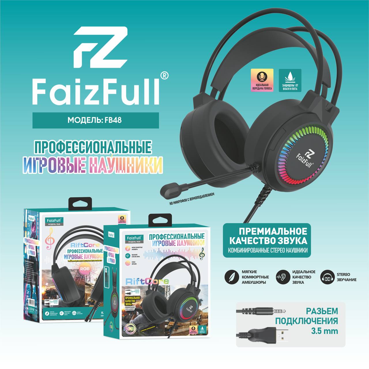 Наушники FaizFull FB48 накладные, проводные, Jack 3.5, USB, микрофон, игровые, подсветка,