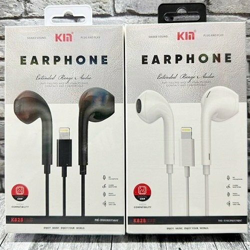 Наушники KIN K-828 вкладыши, проводные, Lightning черный
