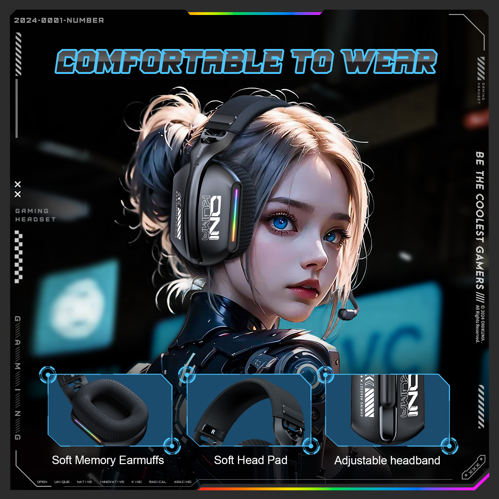 Наушники ONIKUMA GT808 накладные, Bluetooth, микрофон, игровые, подсветка,