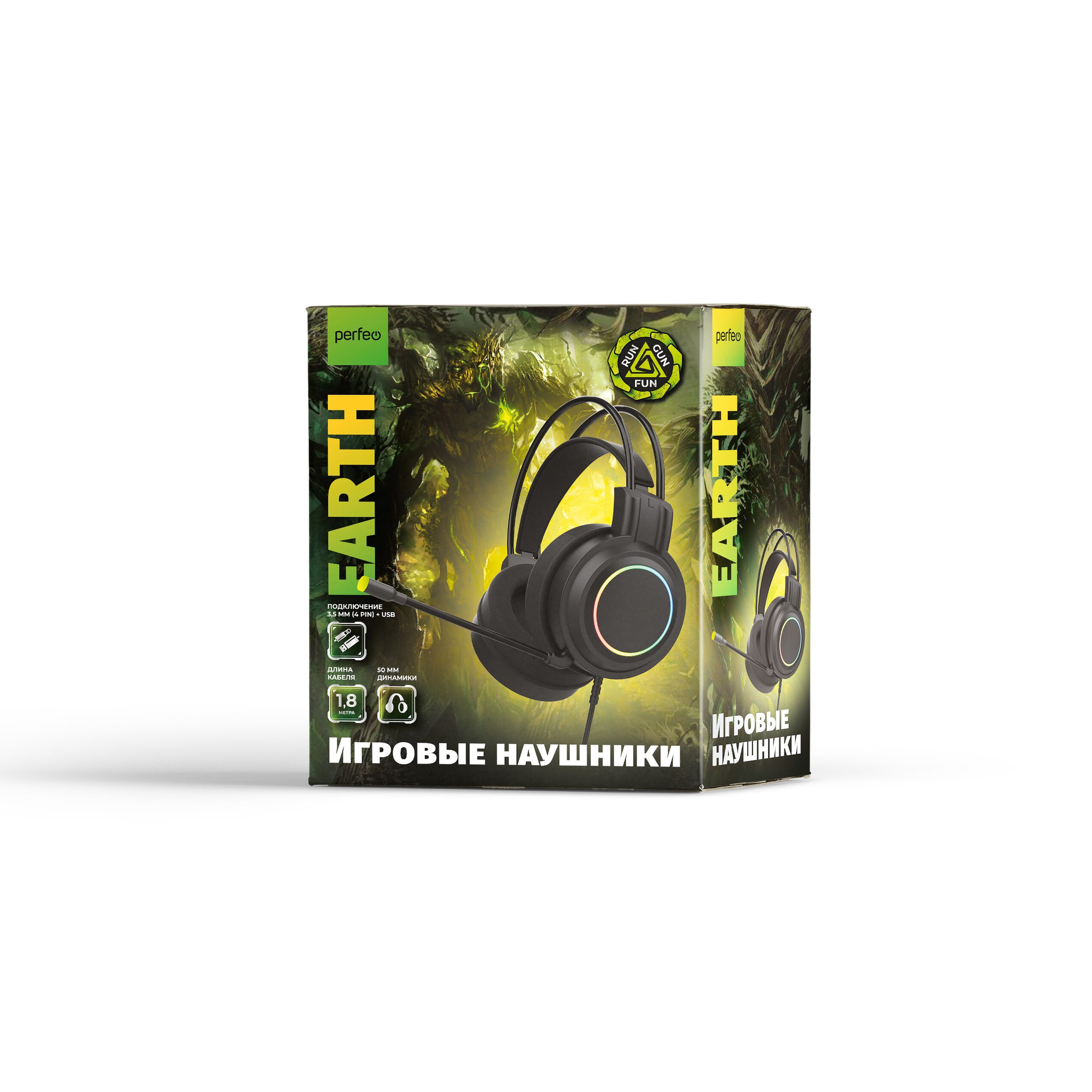 Наушники Perfeo EARTH накладные, проводные, Jack 3.5, микрофон, игровые, подсветка, черный