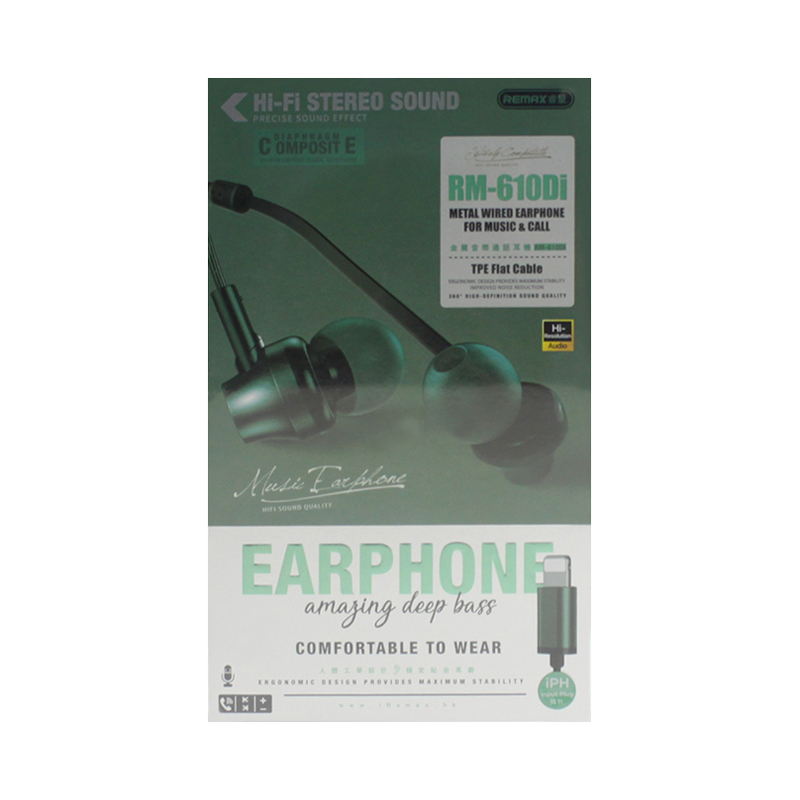 Наушники Remax RM-610Di вакуумные, проводные, Lightning микрофон, темно-зеленый