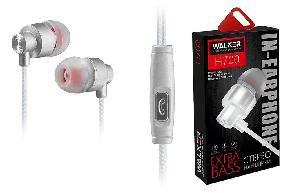 Наушники Walker H700 вакуумные, проводные, Jack 3.5, микрофон, белый
