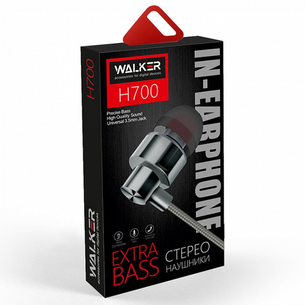 Наушники Walker H700 вакуумные, проводные, Jack 3.5, микрофон, серый