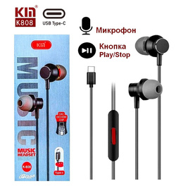 Наушники KIN K-808 вакуумные, проводные, Type-C, микрофон, белый