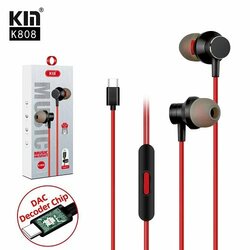 Наушники KIN K-807 вкладыши, проводные, Type-C, микрофон, красный