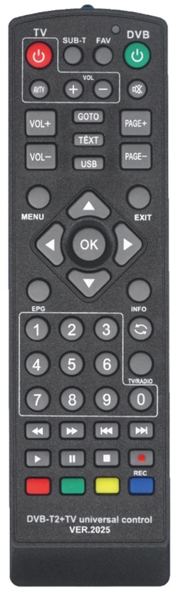 Пульт дистанционного управления для ТВ-приставки DVB-T2+TV ver.2025 универсальный