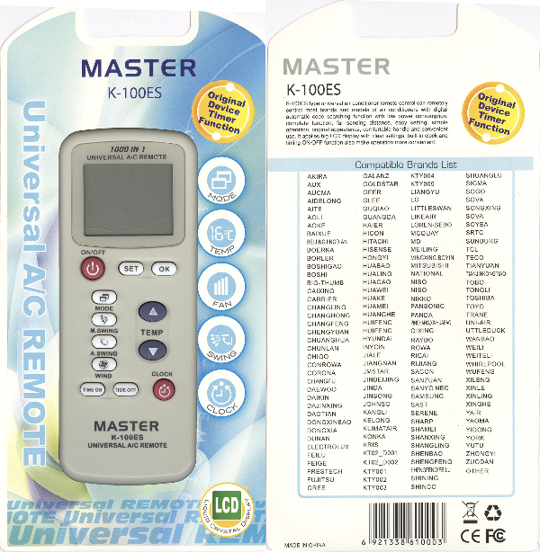 Пульт дистанционного управления для кондиционера MASTER K-100ES универсальный 1000 в 1 /CHANGHOP