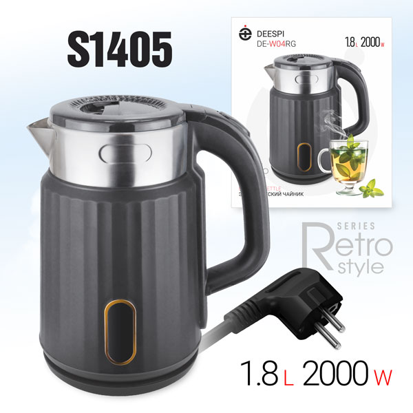 Чайник электрический Deespi DE-W04RG 1,8л 2000Вт (пластик, металл) серый