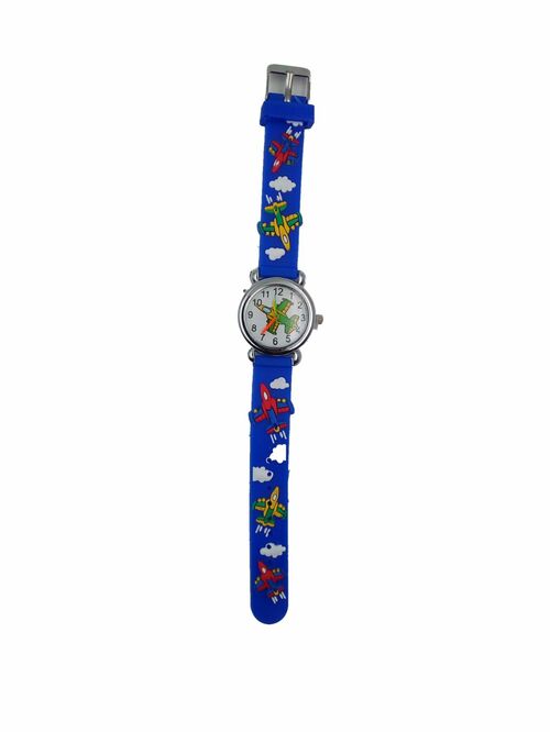 Наручные часы детские кварцевые Принт Самолет синий силиконовый ремешок