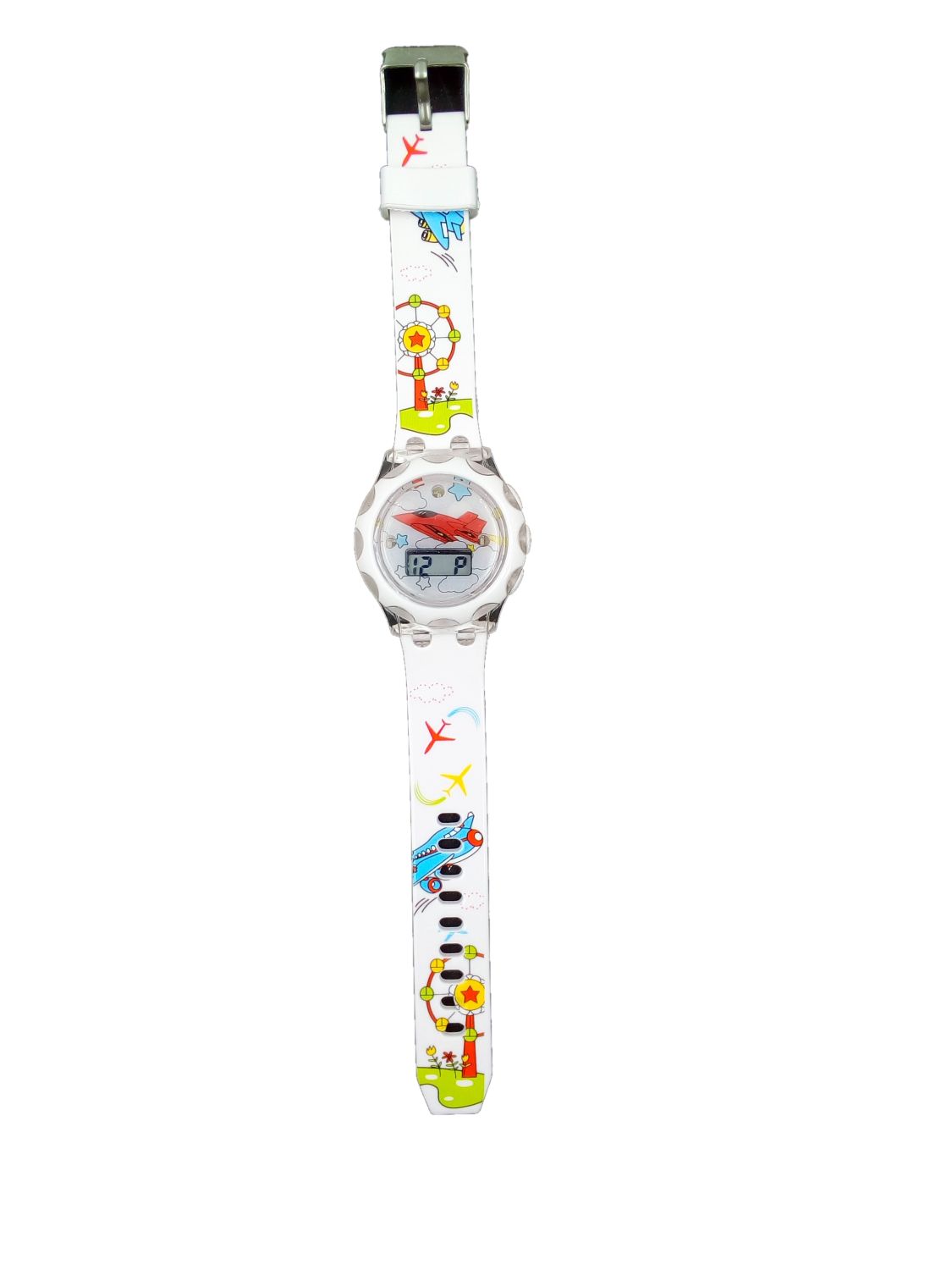 Наручные часы детские электронные Принт Самолет с подсветкой белый силиконовый ремешок