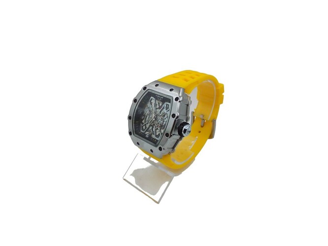 Товар «Наручные часы мужские кварцевые Tubular дата серебристая окантовка желтый силиконовый ремешок» добавлен в корзину