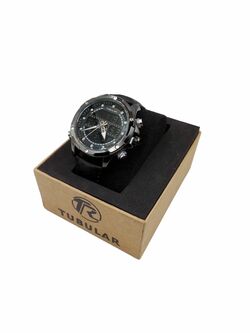 Наручные часы мужские электронные Tubular графитовый циферблат черный кожаный ремешок в коробке
