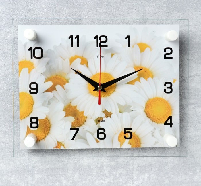 Настенные часы прямоугольные "Ромашки" 20*26 см бесшумные 2267864