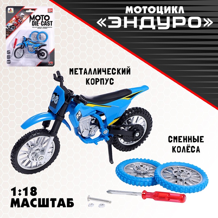 Игрушка настольная Фингерборд Мотоцикл Эндуро металлический со сменными колёсами 9893553