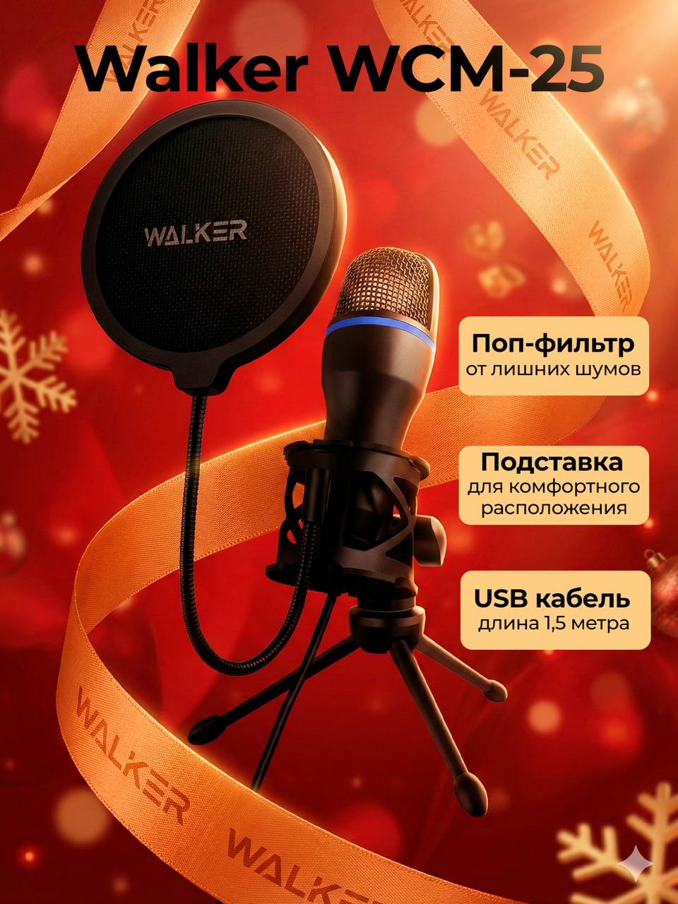 Микрофон Walker WCM-25 компьютерный, для стрима USB,