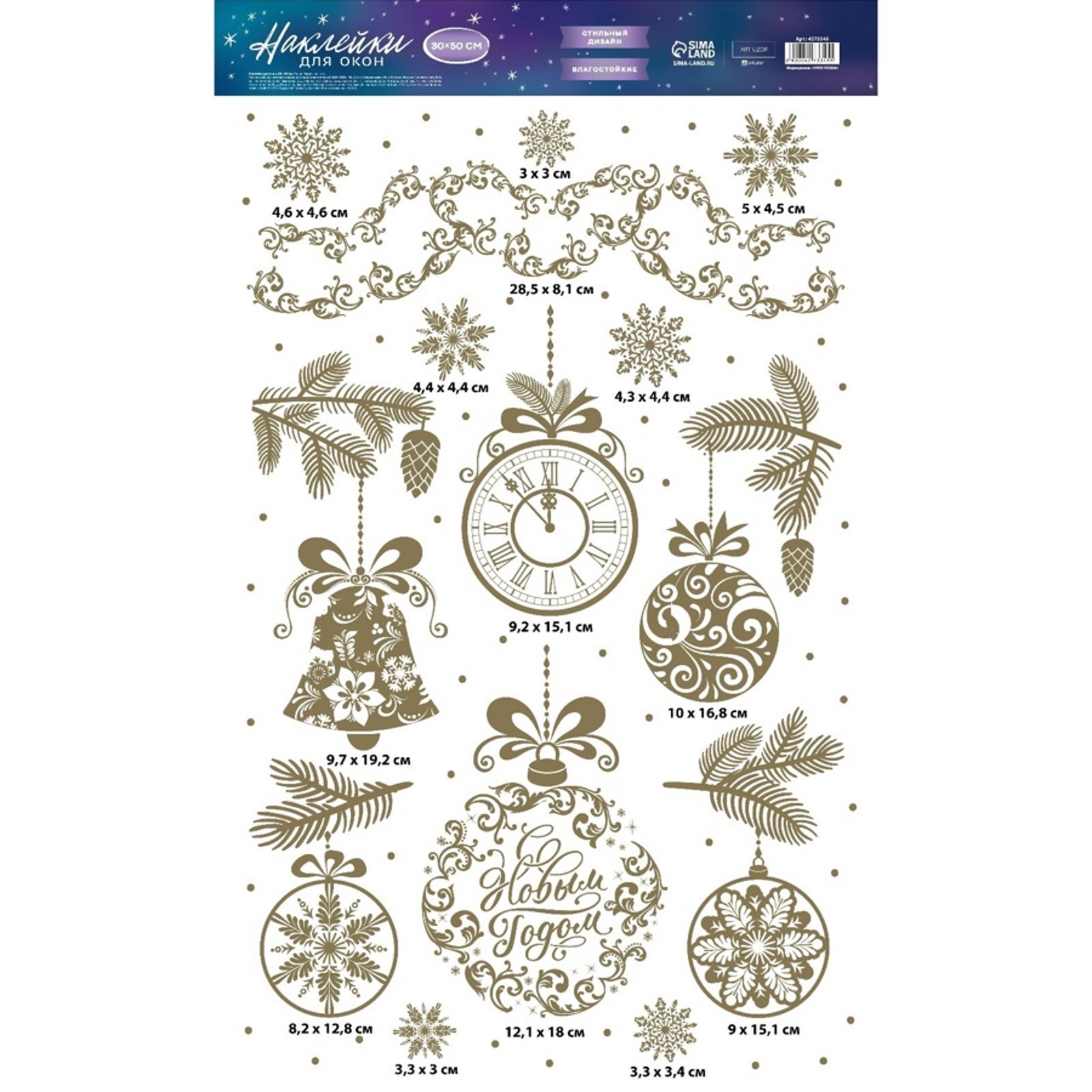 Товар «Новогодний декор наклейки на окно «C Новым годом» виниловые с фольгированием 30*50 см 4273345» добавлен в корзину