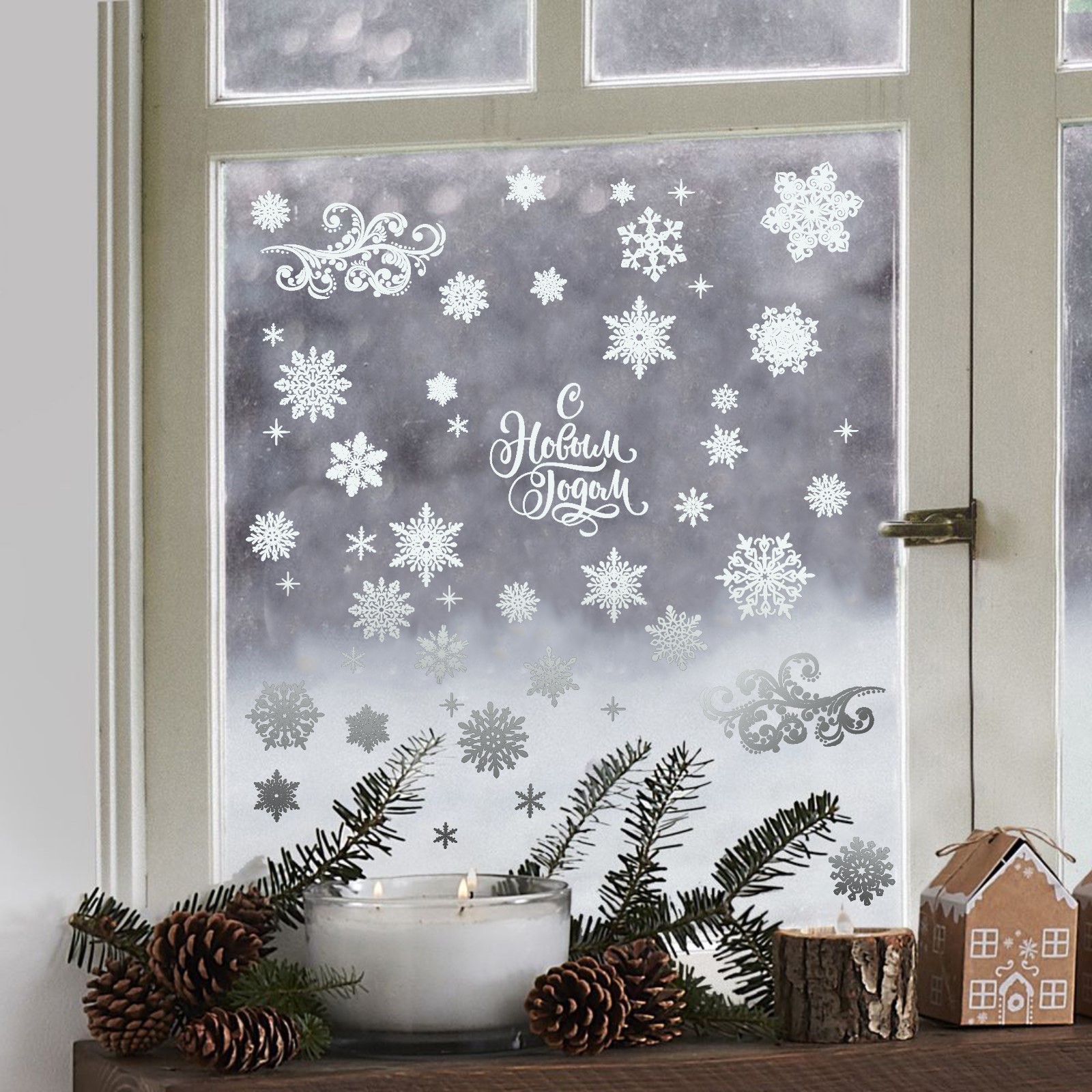 Новогодний декор наклейки на окно «Новый год» виниловые с фольгированием 30*50 см 9524409