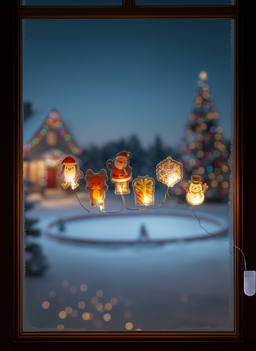 Новогодний декор Светодиодная наклейка на окна "Новогодние друзья" 0.5 м, 6 LED, от батареек...
