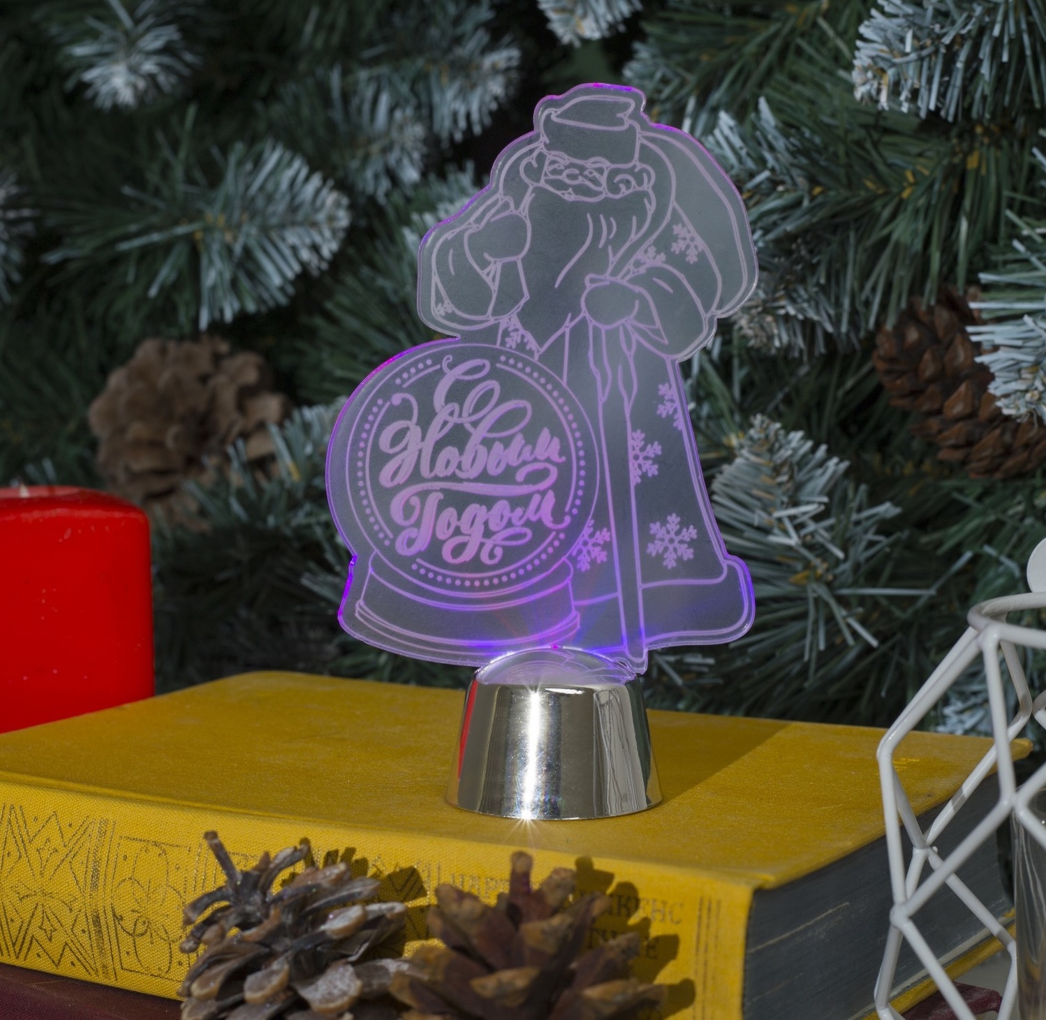 Товар «Новогодний декор световая подставка "Дед Мороз, С Новым годом" 14.5х9 см, 1 LED, 2446498» добавлен в корзину