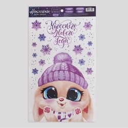 Новогодний декор наклейки на окно «Новый год» зайчонок многоразовые 20*34 см 4288499