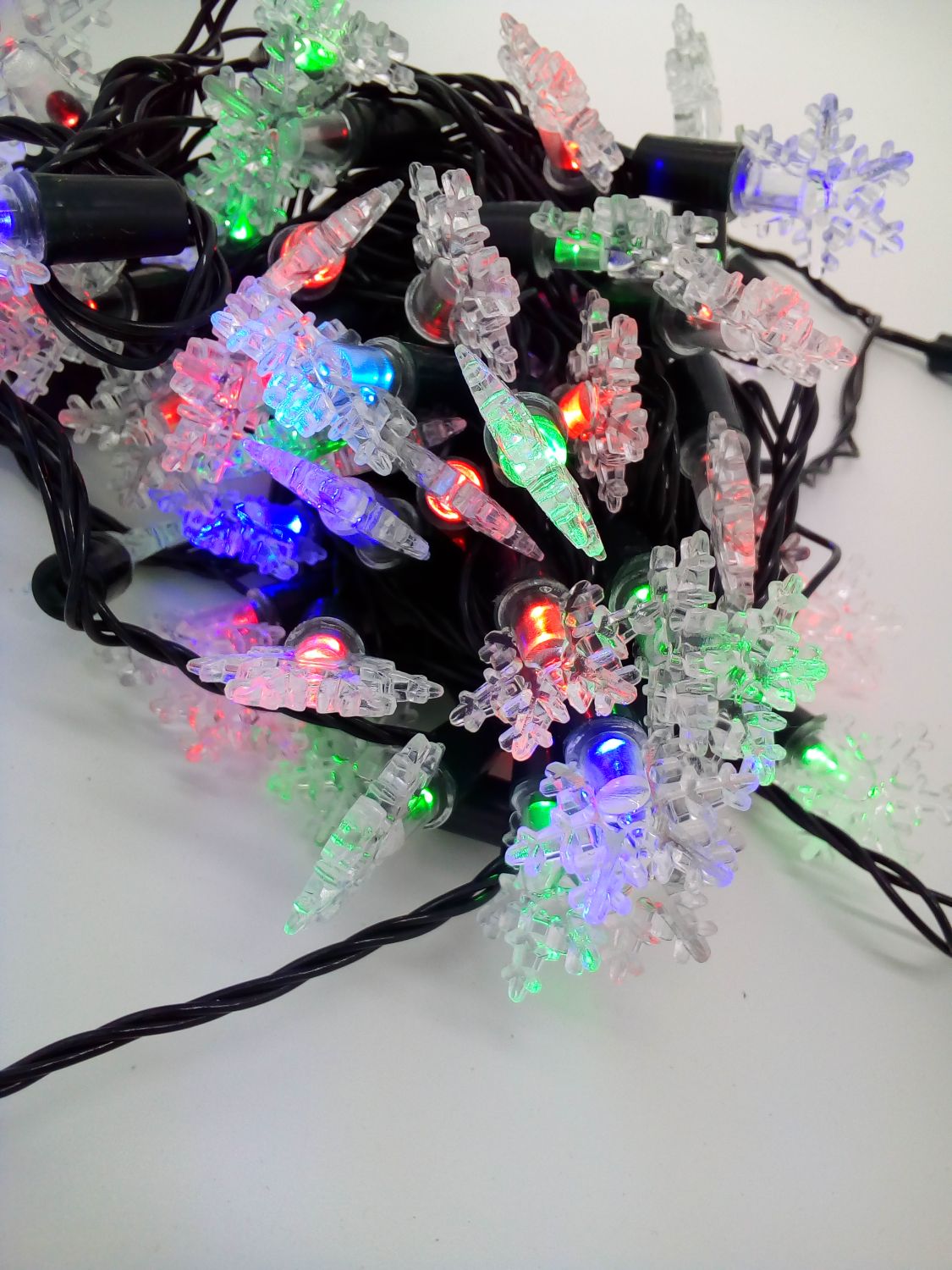 Елочная гирлянда "Нить" Снежинки 100 LED RGB черная нить
