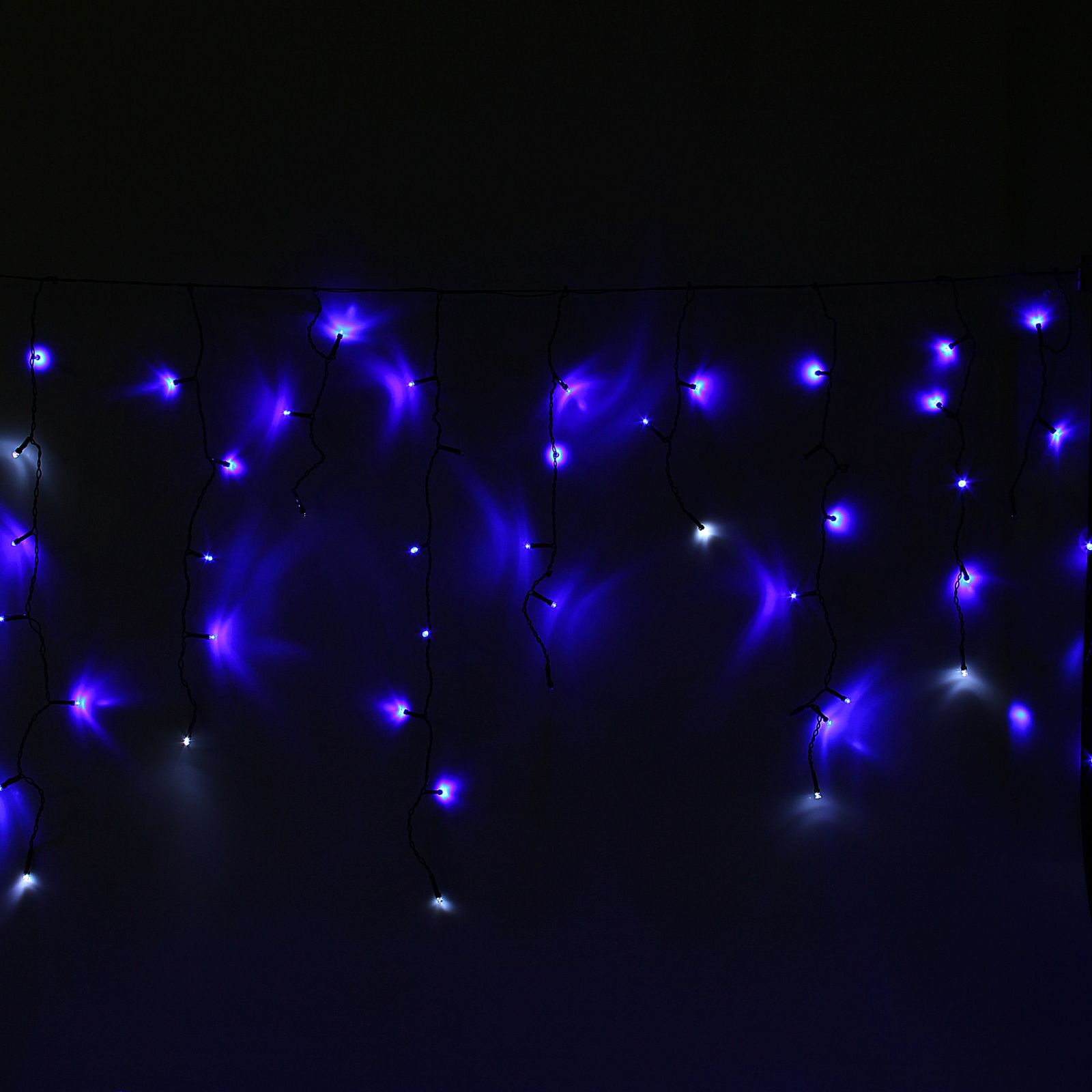Елочная гирлянда "Бахрома" 60 LED 1*0,6 м синий черная нить уличная контр. 8 режимов 705907