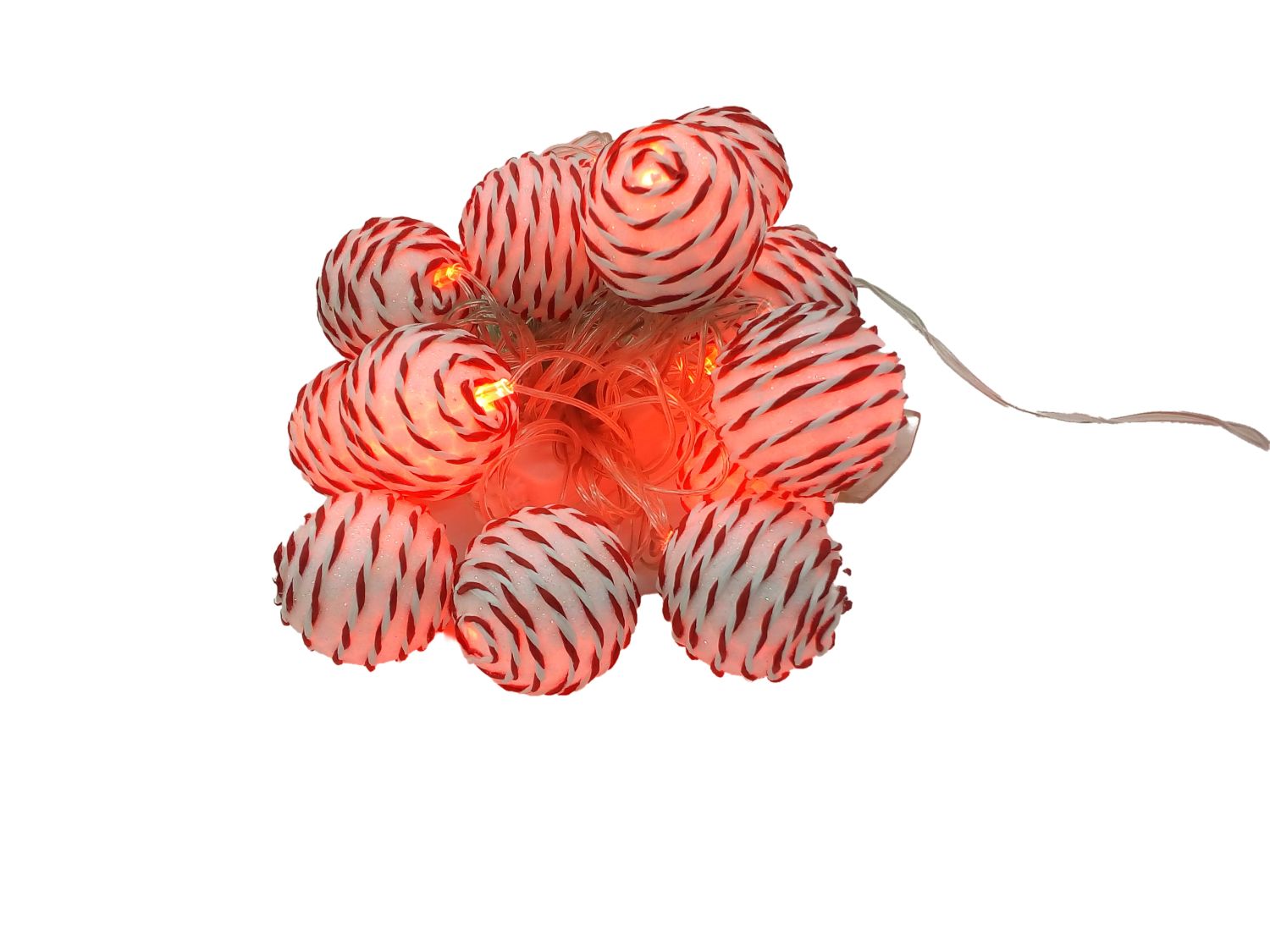 Елочная гирлянда "Нить" Шарики с узорной линией красный прозрачная нить