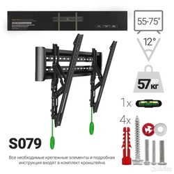Кронштейн для ТВ C3-T настенный, наклонный, 40"-65", нагрузка до 55кг