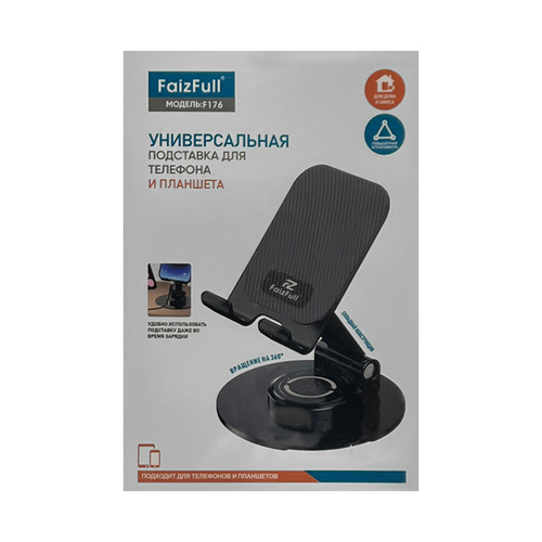 Подставка для телефона FaizFull F176 черный металл, вращение 360°