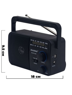 Радиоприемник RAISENG R-611AC аналоговый FM, AM, SW FM/ USB/ TF, питание от АКБ, от сети, черный