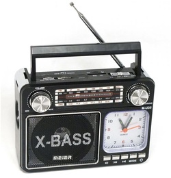 Радиоприемник Meier M-41BT аналоговый FM, AM, SW Bluetooth/ FM/ USB/ TF, питание от АКБ, от сети, + часы, фонарь