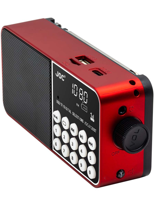 Радиоприемник JOC H6821BT цифровой FM, AM, SW USB/microSD/Bluetooth питание от АКБ красный