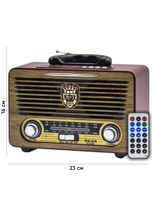 Радиоприемник Meier M-115BT аналоговый FM, AM, SW Bluetooth/FM/USB/TF/ПДУ, питание от АКБ, от...