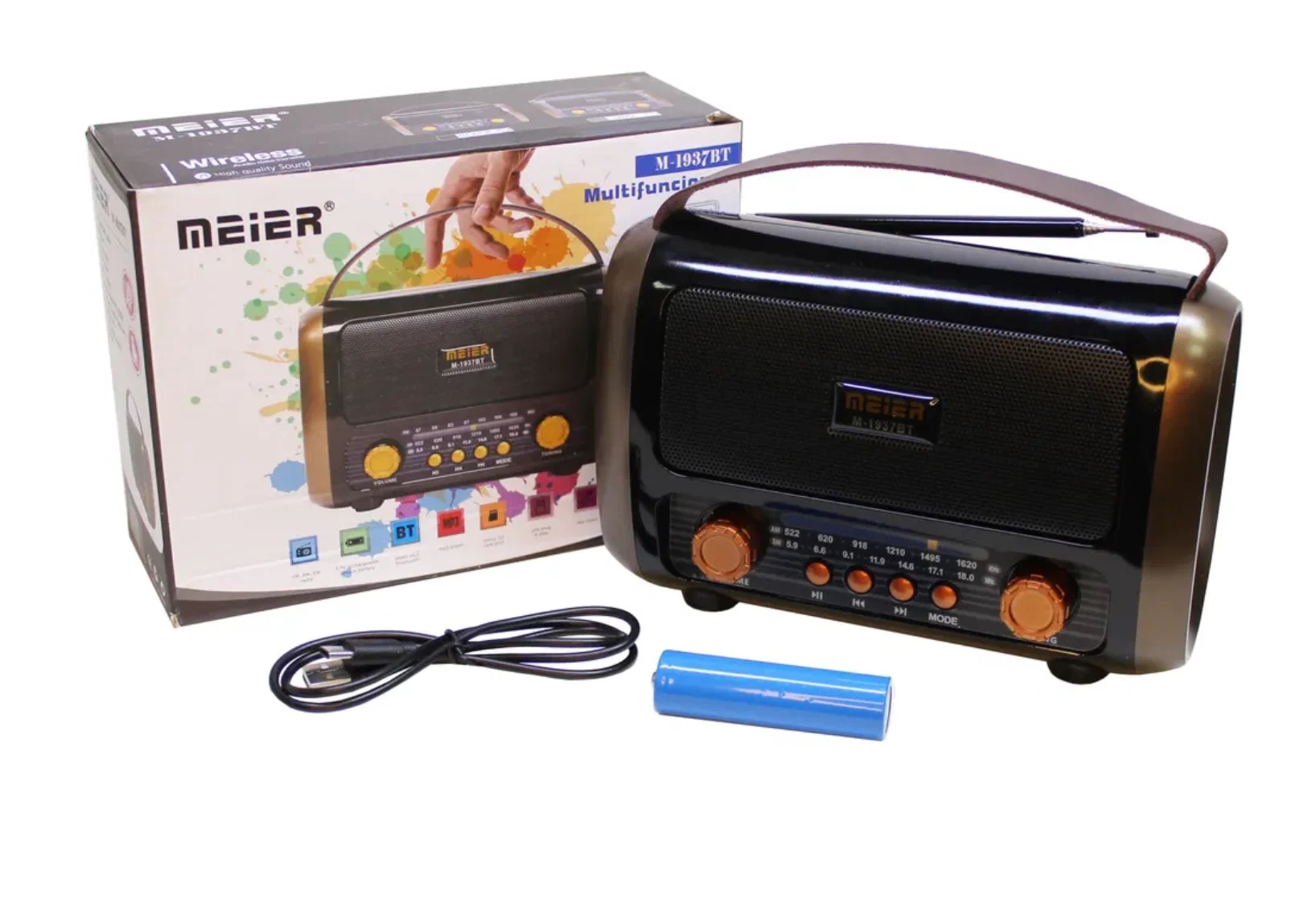 Радиоприемник Meier M-1937BT аналоговый FM, AM, SW Bluetooth/FM/USB/TF/ПДУ, питание от АКБ, от сети,