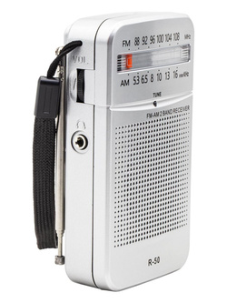 Радиоприемник POKET RADIO R-50 аналоговый FM, AM AUX, питание от АКБ, от сети, серебро