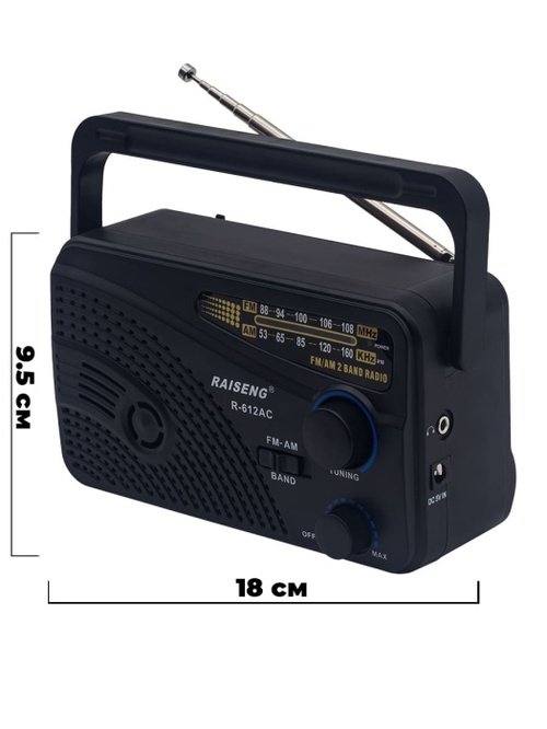Радиоприемник RAISENG R-612AC аналоговый FM, AM, SW FM/USB/TF, питание от АКБ, от сети, черный