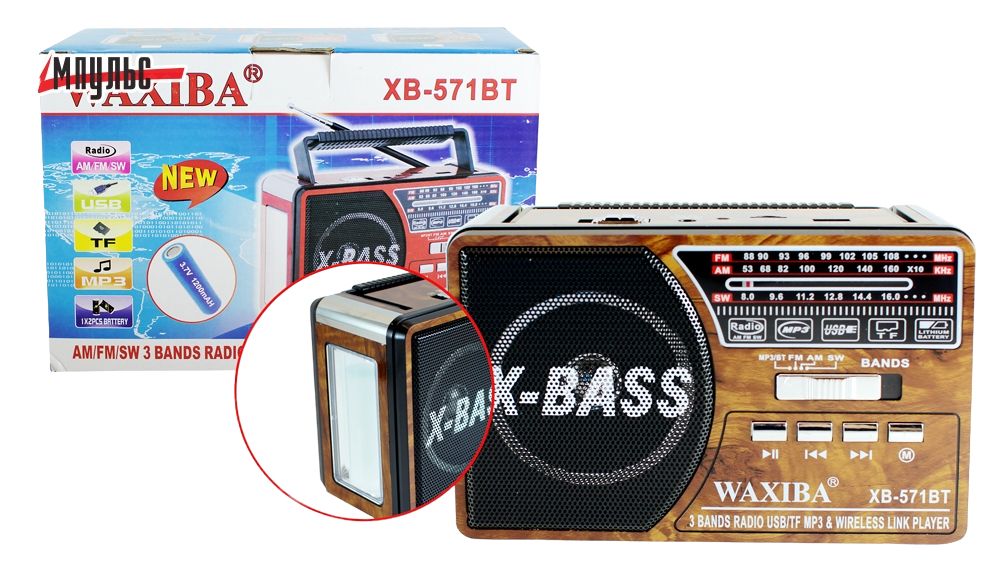 Радиоприемник Waxiba XB-571BT аналоговый FM, AM, SW USB/microSD питание от АКБ, от сети,...
